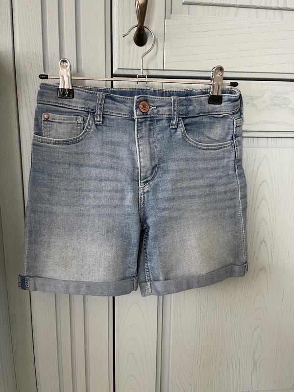 Шорты для девочки 9-10 лет, рост 140 см Длина по боковому шву 31 см, ПОТ 30 см, есть утяжка, ПОБ 39 см Состав: 80% хлопок, 19% полиэстер, 1% эластан