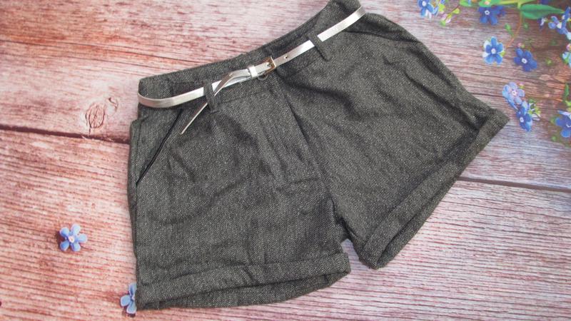 Теплые шорты в елочку ( есть чуток серебристой люрексовой ниточки) 10/11 лет ПОТ-32 см (есть утяжка) ПОБ-43/44 см (не больше) длина-27 см