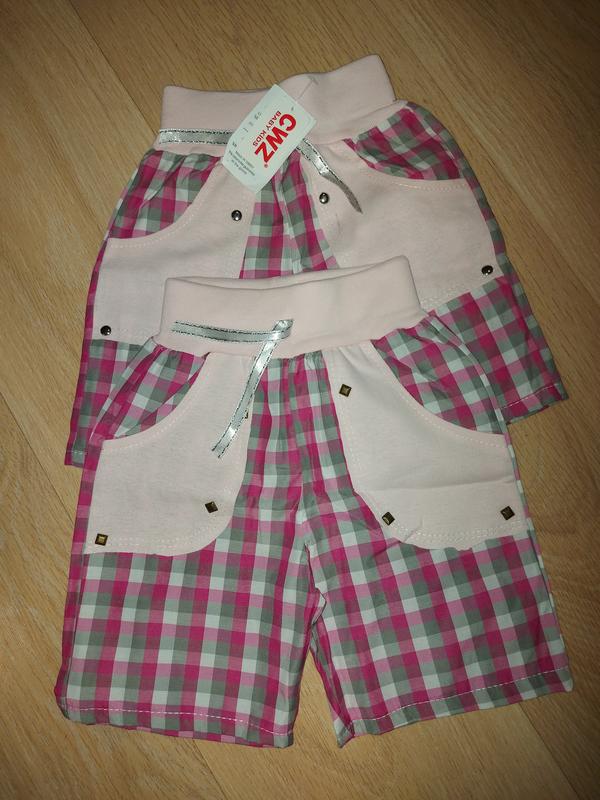 Летние шорты. На девочку. На 1, 2 года. Резинка и карманы трикотаж