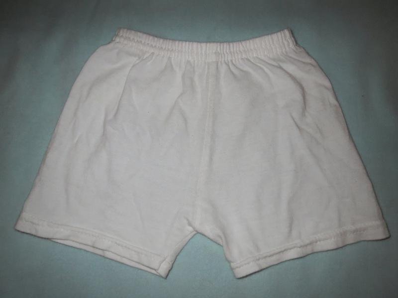 Белые шорты на девочку или мальчика. Размер наверное 110. Длина 21см, ПО пояса 17см. Пояс на резинке. Состояние хорошее. Состав 100% хб.