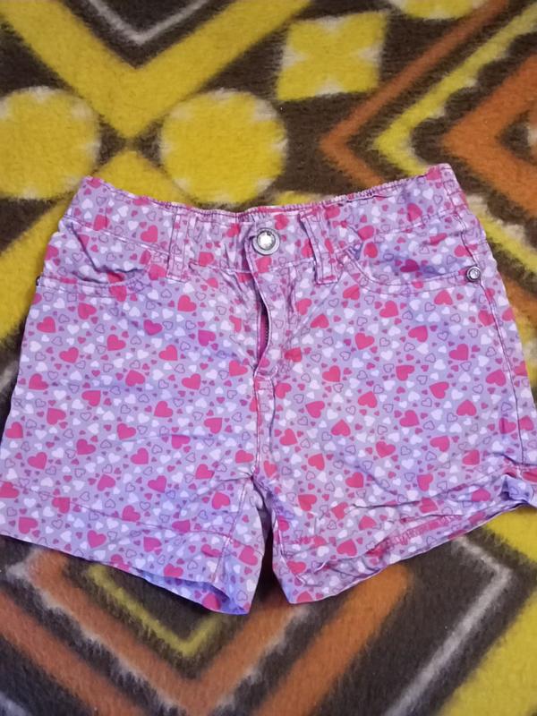 Продам стильные, красивые, лёгкие, удобные шорты на девочку размер 116. Состояние хорошее. Состояние новой вещи. На фото цвета не проявились полностью, как в реальности. В реальности красивые цвета: главный нежно сиреневый, и сердечки красные и белые. Шорты смотрятся отлично. На молнии . Имеются 2 кармана сзади и 2 спереди. Замеры: длина 23 см, полу обхват по талии (в спокойном состоянии ( рези ночка тянется) 24,5 см, длина по середине от самого верха и до мотни по переду 17 см, по заду 21 см, отверстие для ноги, по низу штанины 19 см, полу обхват в районе бёдер 33 см.
