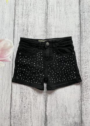 Крутые джинсовые шорты в стразах DenimCo 7-8лет, тянется, в поясе утяжка, замеры на фото