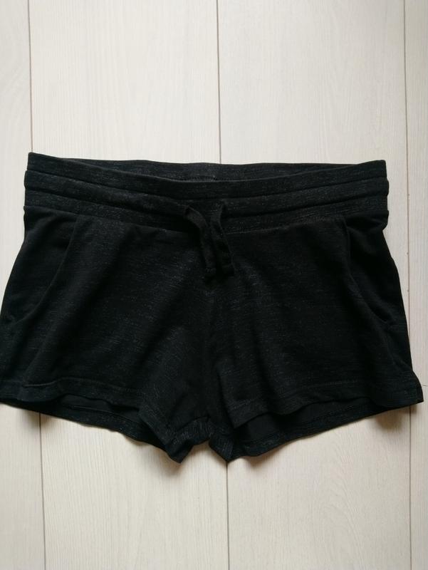 Шорти в дуже хорошому стані На вік 12-13 років і ріст до 158 см Матеріал 95% котон і 5% еластан Є бокові кішенькі Довжина з боку 25 см Півобсяг пояса 35 см і тягнеться до 47 см і стягується шнурівкою Півобсяг бедер 45 см