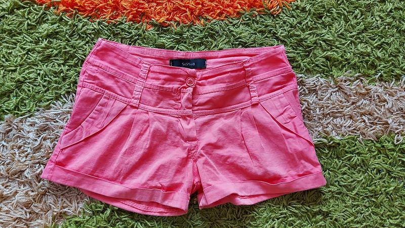 Шорти на 13-16р. Пояс понижений 36, бедра 41, довжина 24, ширина штанини 25 Колір кораловий.