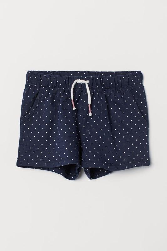 Чудові літні шортики H&M Відмінна якість за чудовою ціною! Шорти з трикотажу з органічної бавовни з гумкою на талії та бічними кишенями. Склад: 100% хлопок. Колір: синий в мелкий горошек. Розміри у наявності: 122. Ціна кінцева. 122: ПОТ 28,5 ПОБ 38 Довжина по боковому шву 22,5