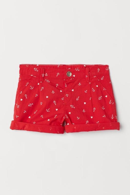 Яскраві шортики з якорями H&M Відмінна якість за чудовою ціною! Шорти з бавовняного переплетення з регульованою еластичною талією, застібкою, бічними кишенями та фальшивими кишенями на спині. Склад: 100% хлопок. Колір: червоний/якорі. Розміри у наявності: 98. Ціна кінцева.