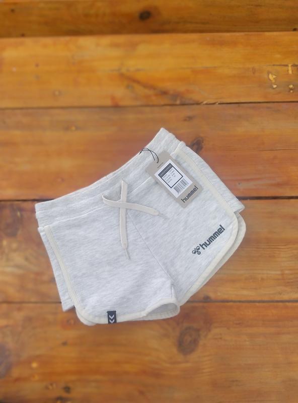 Трикотажные хлопковые шорти от брендового производителя Hummel. Имееться три кармана ,два боковых и один задний кармашек. Бо бокам есть не большые вырезы на калошах очень стильно и модно смотрится. Шнурок робочий, можно регулировать талию. Размер 122 Длина -24см. Посадка спереди-22см. талия по резинке -30см. Бёдра -36см.