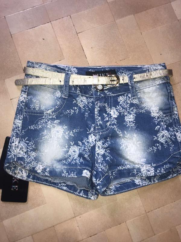 Джинсовые шорты на девочку от бренда Yuke.Цвет голубой.Размеры 128-164р.Посадка-средняя.Модель выполнена из джинсовой ткани в цветочек.Спереди и сзади два кармана.Шорты идут под пояс золотистого цвета.По талии идёт резинка-утяжка для регулировки. Шорты очень модные и красивые.Понравятся всем модницам! Состав:100%джинс,хлопок.