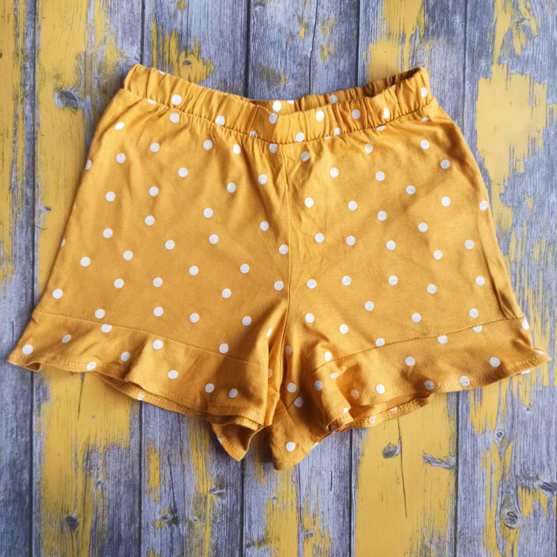 Летние шорты на девочку ростом 116см (~ 6 лет), от французской торговой марки "Kiabi". Детские шорты желтого цвета в белый горох. В поясе широкая эластичная резинка. Шорты для девочки станут незаменимой вещью в гардеробе в жаркое время года. Сезон: весна/лето. Состав: 51% хлопок, 49% вискоза. Замер: длина - см, ширина в бедрах - см, шаговый шов - см.