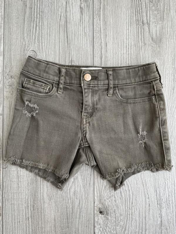 Джинсові шорти. Стильні. Колір хакі, фото ,на жаль, не передає реального кольору. Джинс стрейчевий, що дуже зручно, не сковує рухи дитини. В поясі є утяжка на гудзичках, можна відрегулювати необхідну ширину пояса. Посадка середня (не низька). Стан відмінний, за винятком одного дефекту (на останньому фото видно - 2 невеличкі плямки). Через це продаю так дешево. Інших нюансів немає. Гуляти в дворі, на майданчику в самий раз. На бірці вказано 7/8 років, але реально буде десь від 5 років. Так як діти різні, краще дивіться заміри: довжина 21,5 см, пояс в спокійному стані 28 см.