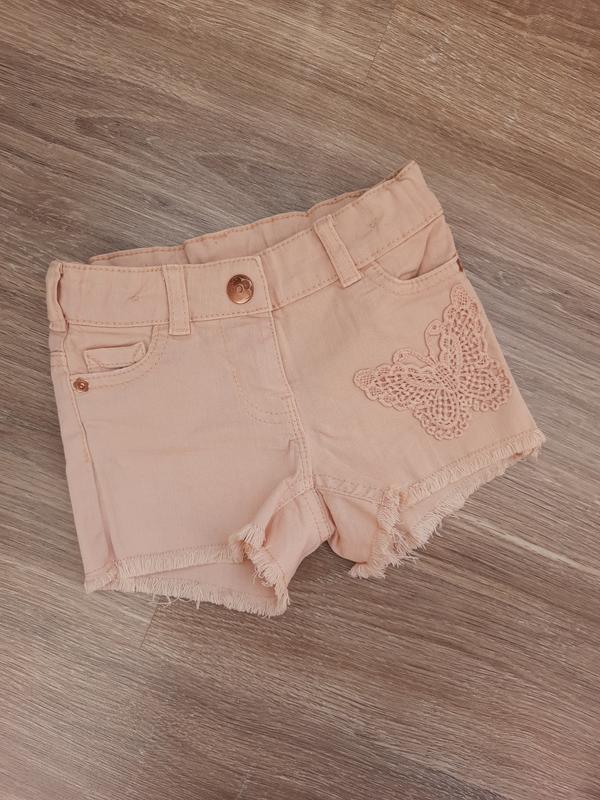 Джинсові шортики C&A Palomino р. 92, але орієнтуйтеся на заміри. У поясі резинка-утяжка, застібається на кнопку і блискавку, ніжний персиковий колір. Заміри: довжина 18, піт 24, побіди 29, посадка перед 15, ззаду 25. Дивіться інші мої оголошення, економте на доставці. Відповім на всі питання, додаткові фото надам. Доставка оплата: Оплата на карту Приватбанку, безпечна оплата. Доставка Укрпоштою та Новою поштою, Meest.