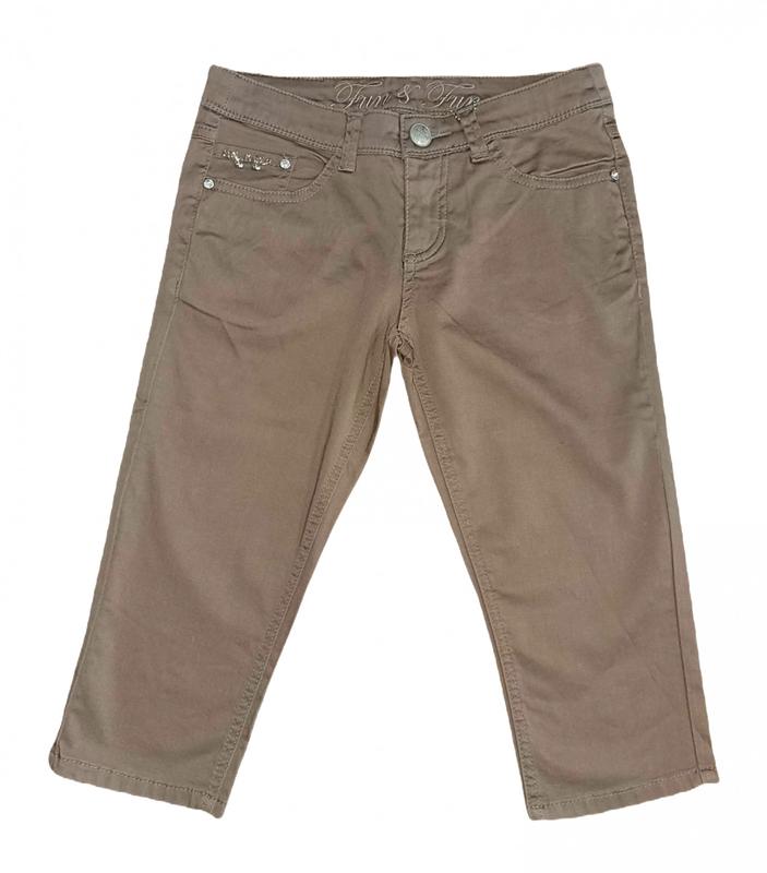 Удлиненные хлопковые шорты для девочки. Застежка на пуговицу и молнию спереди. Петли для ремня. 3 передних кармана. 2 накладных кармана сзади. Замеры: предоставляем по запросу Состав: 99% хлопок 1% спандекс Артикул: FUNJPT0059 Возможно повреждение бирки.