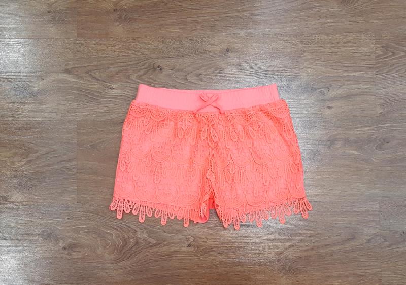Яркие шорты с кружевом на рост 158-164 см. Без следов носки. Длинна 31 см, ширина в поясе 32 см.