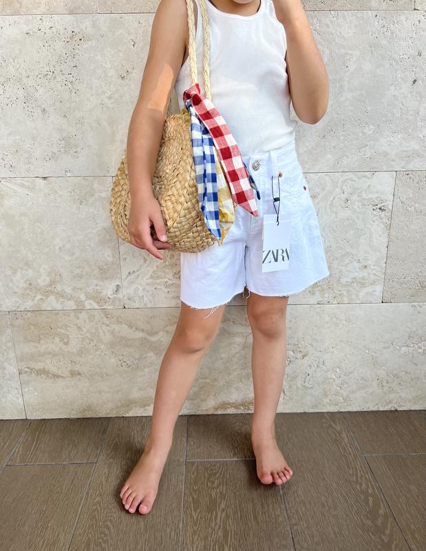 Нові з бірками білі шорти Zara. Просто шикарні фасон! Сидять супер! Розмір на бірці 116 та 122. Є такі ж у класичному блакитному кольорі джинсовому