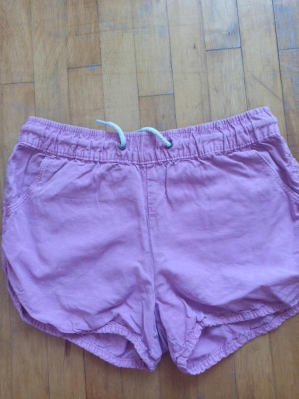 Шорти на дівчинку 10 років. 140 розмір. Не тягнеться, тканина леоцел,дуже легкі. Стан хороший. Недолік видно на фото. На всі питання відповім залюбки.
