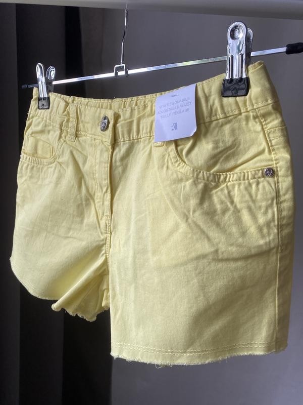 Яскраві джинсові шорти від IDEXE. Спереду і ззаду є кишені. Застібка - блискавка з ґудзиком. У поясі протягнута регулююча резинка. Склад тканини: 97% котон, 3% еластан Вік 9-10 роки, 140 см. Заміри: довжина - 26 см, посадка – 29 см, ширина по талії – 34 см (затягування)