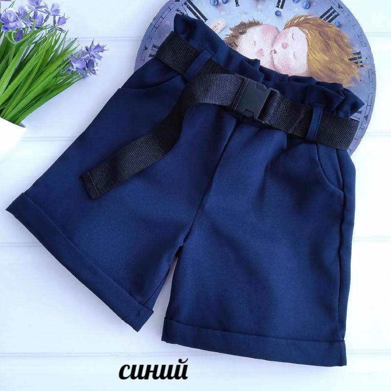крыл Шорты ⭐Ткань: костюмка(80%котон 20% полиэстер) ⭐Цвет: синий ⭐Дополнительно: пояс резинка/по бокам карманы/пояс в комплекте ⭐Производитель Украина р.140-длина 35 см/шаг 12 см/пояс 27 см(тянется)-1шт