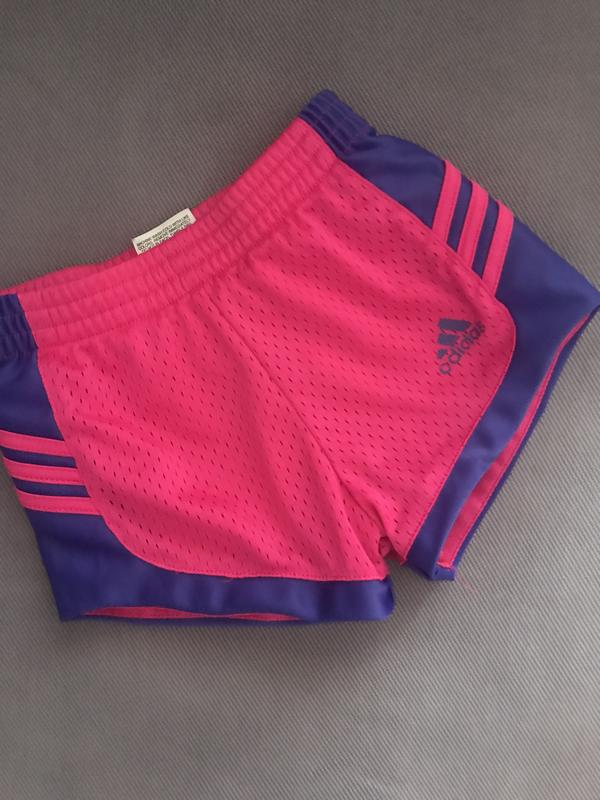 Красиві яскрави шортики для дівчинки Adidas. Розмір на 2 роки. Ширина по резинці - 21 см, тягнеться. Висота по боковому шву -15 см. Висота посадки - 18 см спереду, 20 см ззаду.