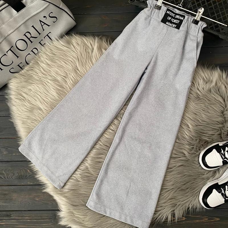 теплі брюки "Палаццо" тканина: шерсть стрейч колір: сіро-голубий ЯКІСТЬ СУПЕР!!! р.134 довжина/крок/стегно 80/59/39см-1шт р.140 довжина/крок/стегно 84/62/40см-1шт