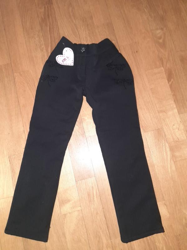 Теплые брюки на флисовой подкладке из плотного габардина.Ззади в поясе резинка, спереди молния с пуговицей.Спереди есть карманы украшенные бабочками из камушков (не осыпаются! )Ззада есть декоративные накладные карманчики.Штаны красиво теплые. Имеется черные и темно синие, но в одном размере 32/116-урост Длина брюк 70см, внутренний шаг 54см, талия 26+26 см =52см +10см резинка Отпрашиваю новую почта, укрошту Оплата наложенным по предоплате,безопасная оплата на шкафу, на карту