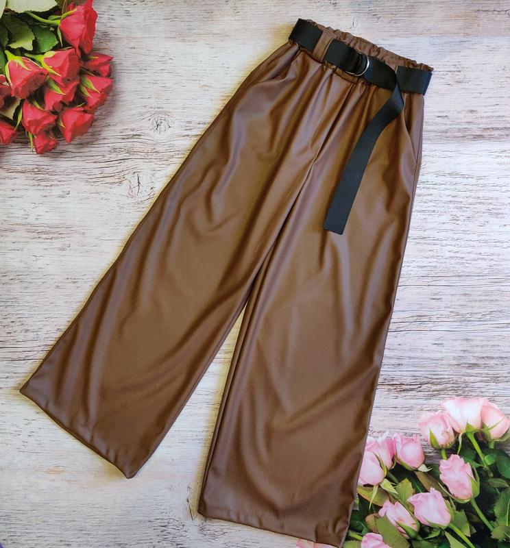 590 грн Шикарные палаццо для девочек очень стильные якісна еко-шкіра замеры-длина-шак\пояс 140р-85\61\26 146р-89\65\27 152р-93\68\27 158р-96\69\28 140-1шт 146-1шт 152-1шт 158-1шт