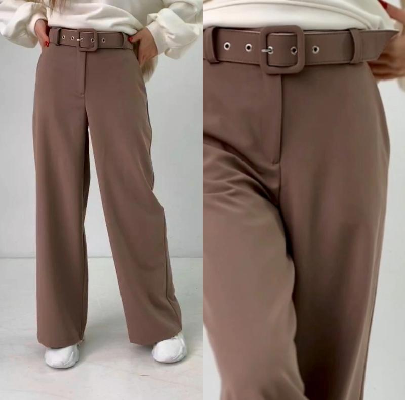 арт 1786 🎓Брюки трубы с поясом в тон с карманами в поямке сзади под резинку застегивается на молнию и пуговицу 🎓пояс у в комплекті ткань тиар ГАРНАЯ КАЧЕСТВО! размер/🎓длина/шак/пот/поб 140/🎓89/63/28/43-2шт Тан