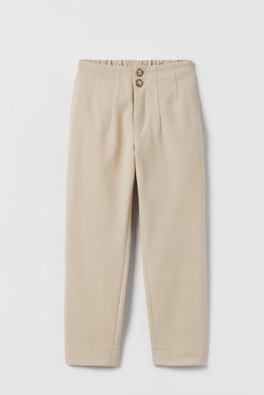 невероятно красивые брюки с высокой посадкой на осень/весну. ткань чуточку тянется. без утяжки. состав 62% полиэстер, 33 вискоза, 5 эластан 10(140): длин 79, шаг 58, пояс сзади на резинке 28-36.