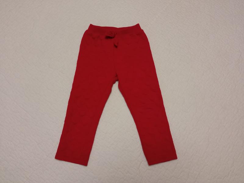 Брюки моей дочки. Состояние отличное. Цвет ярко красный. Без утеплителя. На ткани выжаты сердца.