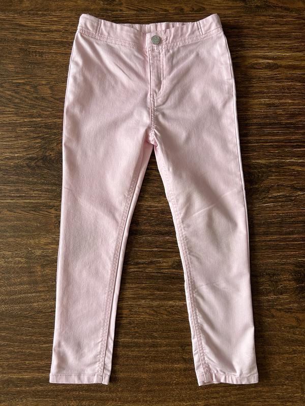 Брюки для девочки на возраст 6-7 рочков. Фирма F&F. Как новые. Цвет нежно-розовый. Замеры: пояс 28 см, есть утяжки, длина 70,5 см, шаг 49 см. Другие данные на фото