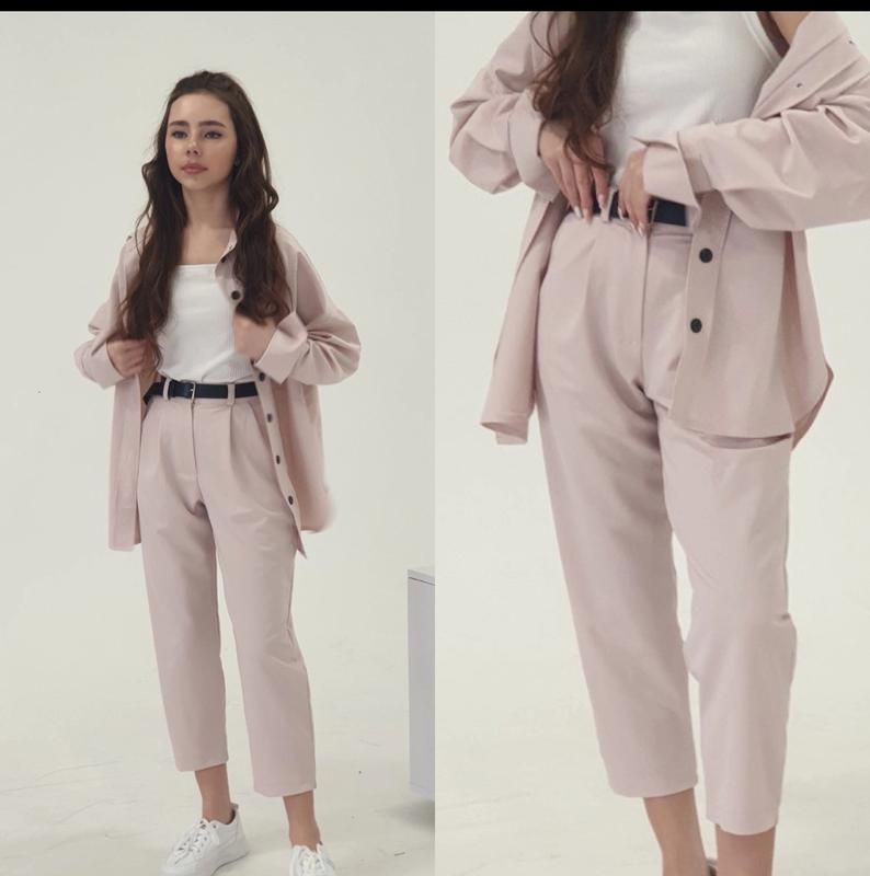 арт 2083 Брючки-банани Модно и современно скорочена модель ткань костюмка тиар штаны в талии сзади под резинку с карманами застегивается напуговица и молнию Ремень в комплекте размер/длин.штанов/крок/пот/поб похибка +-2см 140/74/48/24/46-1шт 146/77/52/24/47-1шт 158/86/59/28/50-1шт 164/89/61/30/51-1шт Тан