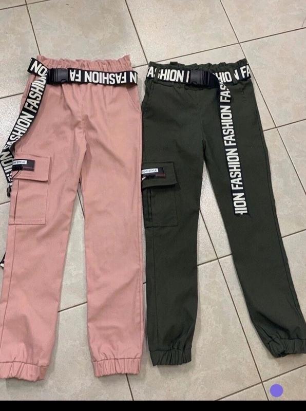 Джоггеры. Цвет ХАКИ Ткань стрейч - коттон . В поясе широкая резинка , есть кармашки , пояс в комплекте длина/шаг/пояс/,бедра 128р-80/55/27/36 (1шт) Цена 430