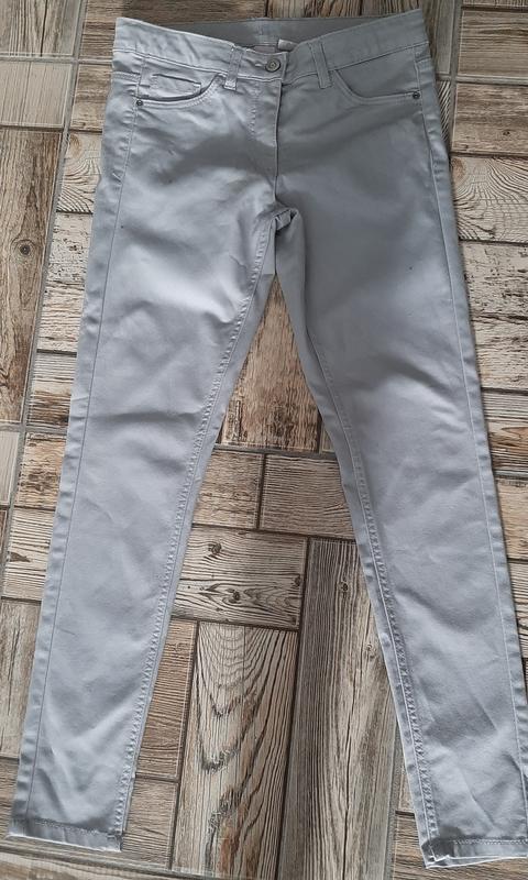Брюки коттоновые с эластаном свет серого цвета, фасон скинни. Стан идеален, без следов ношения. Размер 152. Длина: 89-90 см Шаговой шов : 71 см Талия: полуобхват 37см, растянуть можно до 41 см. Также можно за счет утяжки на талии, ее уменьшить. Бедра: полуобхват 39см, потянуть можно за счет эластана еще на + 4 см.