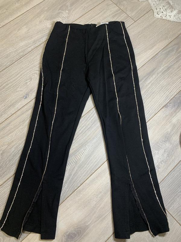 Брюки,з магазина, с камушками, с разрезом на низу Размер:134-140 Бренд:Fashionable Состояние:идеальный,ряжался 2 раза на выход)