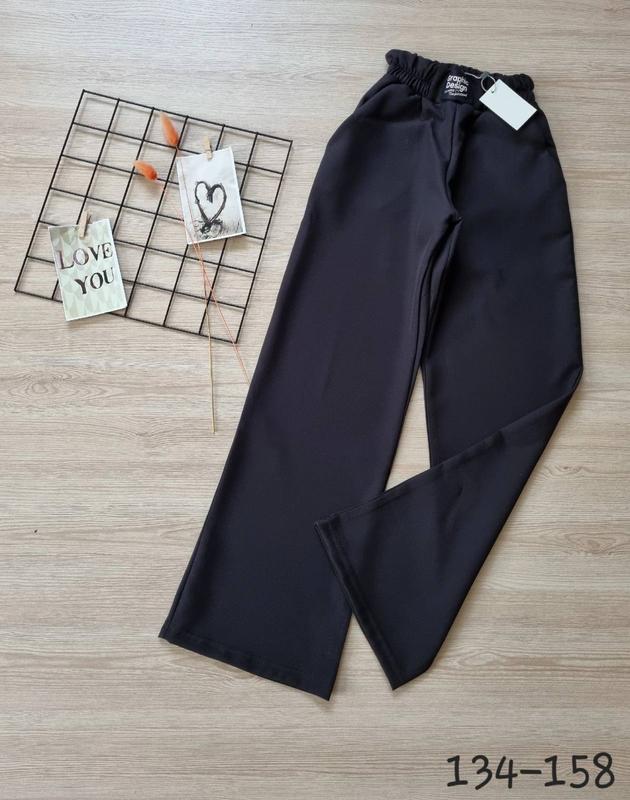 Брючки палаццо тканина костюмка пояс на резинке, есть карманы 134(2 шт)-длина 83,шак 62,пояс 23, поб 40 140(2 шт)-длина 87, крок 66,пояс 24,поб 41 152(3 шт)-длина 95,шаг 71,пояс 26, поб 45 +-2 см