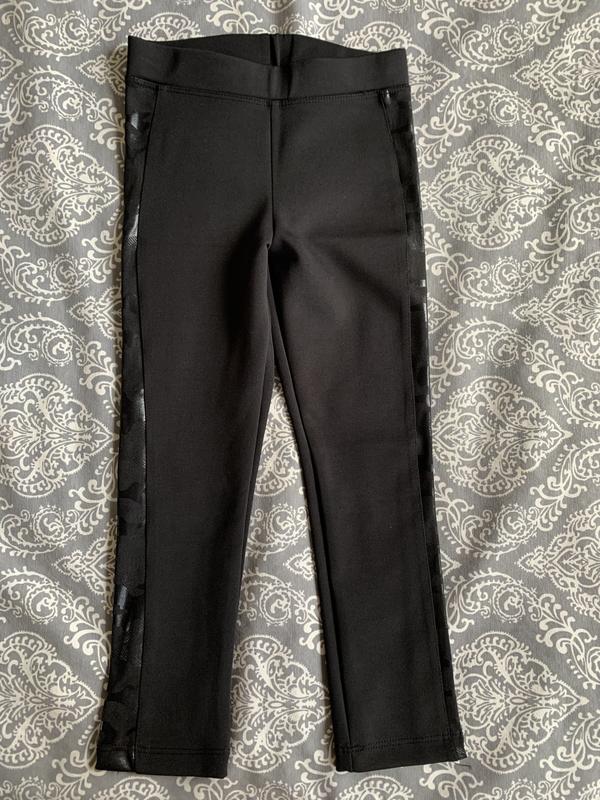 Очень красивые классические брюки для девочки весна/осень, черного цвета, ткань очень хорошо тянется, имеют боковые декоративные вставки, которые придают более праздничный вид. Стан - идеальный.