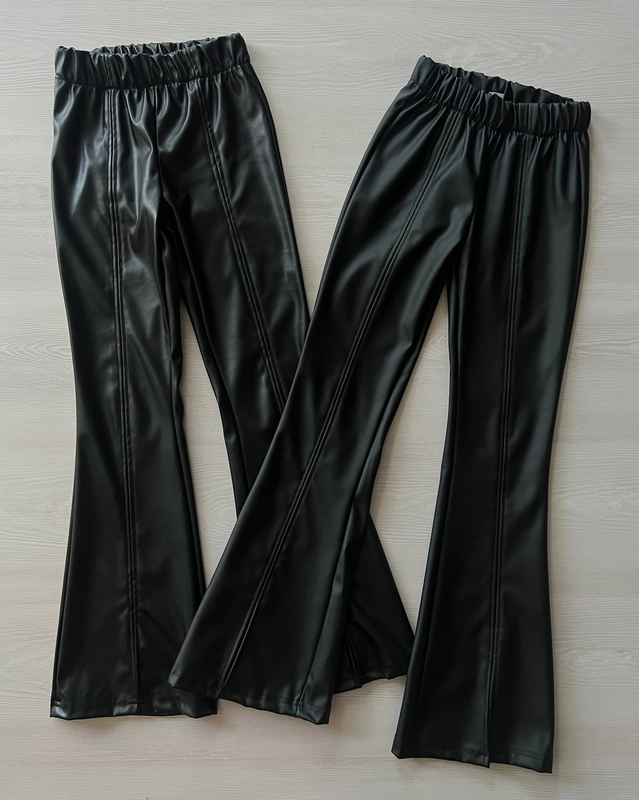 Модные брюки рыбка - еко-шкіра - есть глянцевые и матовые ❤️ - пояс на резинке ( хорошо тянется) - снизу разрезы - цвет черный Размеры в наличии: Глянцевые (с блеском) Замеры!!! Допустима похибка +-2см! Длина/шар/бедра/пояс 134см. 77/61/29/25 140см. 82/64/31/26 146см. 85/68/32/27 152см. 89/70/33/28 158см. 92/75/34/