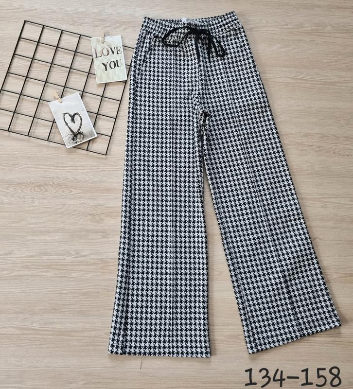 В НАЯВНОСТІ!!! Стильные штанишки палаццо гусиная лапка ткань плотный теплый турецкий трикотаж красиво тянется, имеет кармашки пояс на резинке РЕКОМЕНДУЮ 134(2 шт)-брюки длина 84.крок 62.поб 44.пояс 28 140(5 шт) штаны длина 88, крок 65, поб 46,пояс 29 146(4 шт)-брюки длина 92,крок 68, поб 48,пояс 30 152(4, шт)-брюки длина 96,крок 71,поб 50,пояс 31 158(5 шт)-брюки длина 100, крок 74, поб 52,пояс 32 +-2 см