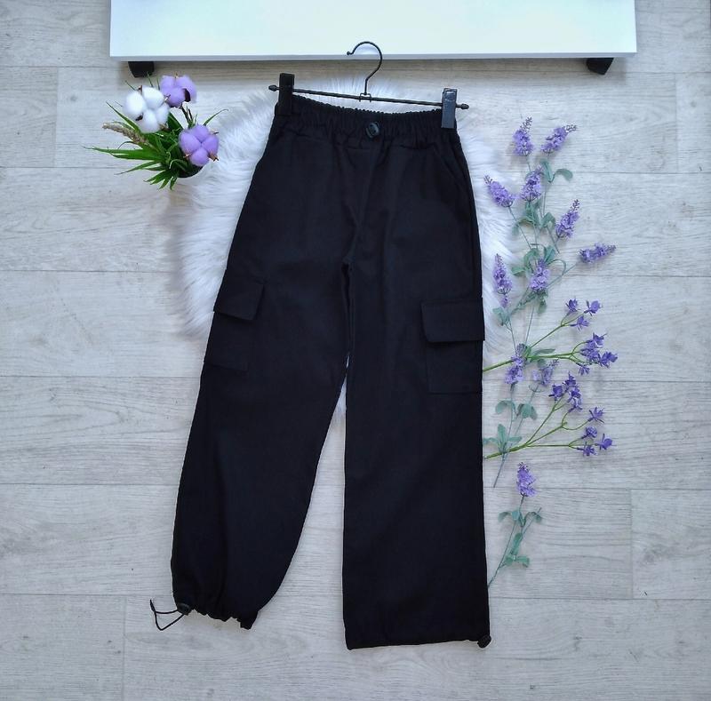 Модные, стильные брюки карго, очень крутое качество 🥰🥰🥰 Плотная ткань, подходят под любой образ 💥💥💥💥💥 💥 По бокам имеются действующие карманы и два накладных кармана.В поясе широкая резиночка с утяжкой, низ брюк также на утяжках 😍😍😍😍 Тканина: джинс Производитель: Украина 🇺🇦 ЗАМІРИ ⤵ +/- 1-2см!!! р.140-длина 86 см/крок 63 см/ПОБ 46 см