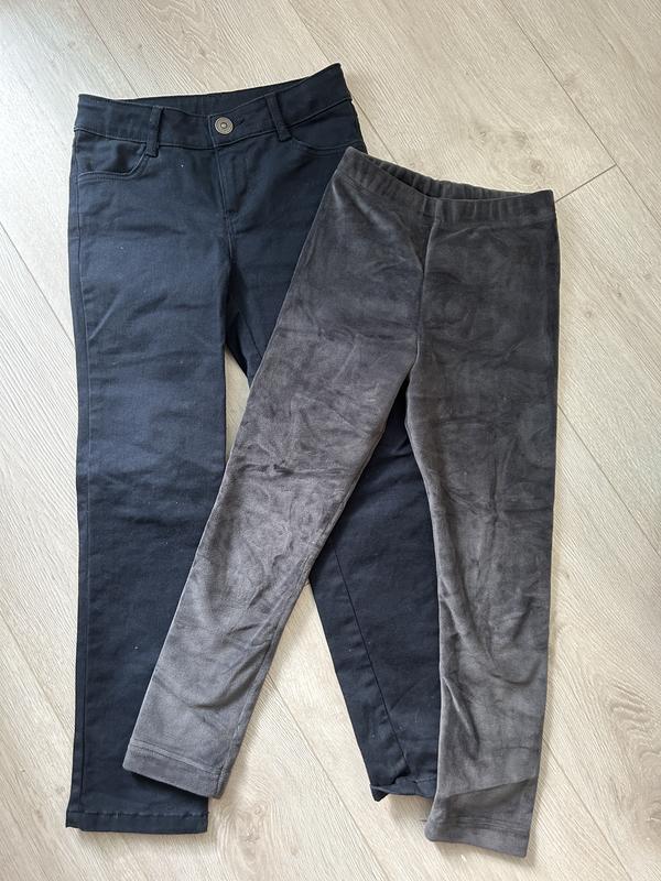 Брюки приобретаются у вайки для дочери на 1 класс. Носилы мало, так как было дистанционное обучение. Лосины велюровые, носили без колгот на осень теплую, с колготами на холод. За две позиции 250 грн. Стан - идеальный.