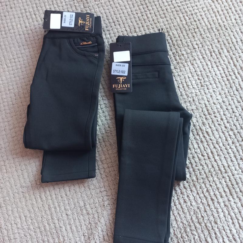 Стильные фабрические брюки для девушки на зиму или холодную осень с идеальной посадкой. Очень качественная ткань, хорошо тянутся, сзади и впереди есть ложные карманы, в поясе резиночка, которая хорошо тянется. Ткань: стрейч с флисовым утеплением Виробник: Китай р.22 -длина 83 см / крок 64 см / ПОБ 32.5 см + тянутся, пояс 26 см + тянется до 34 см