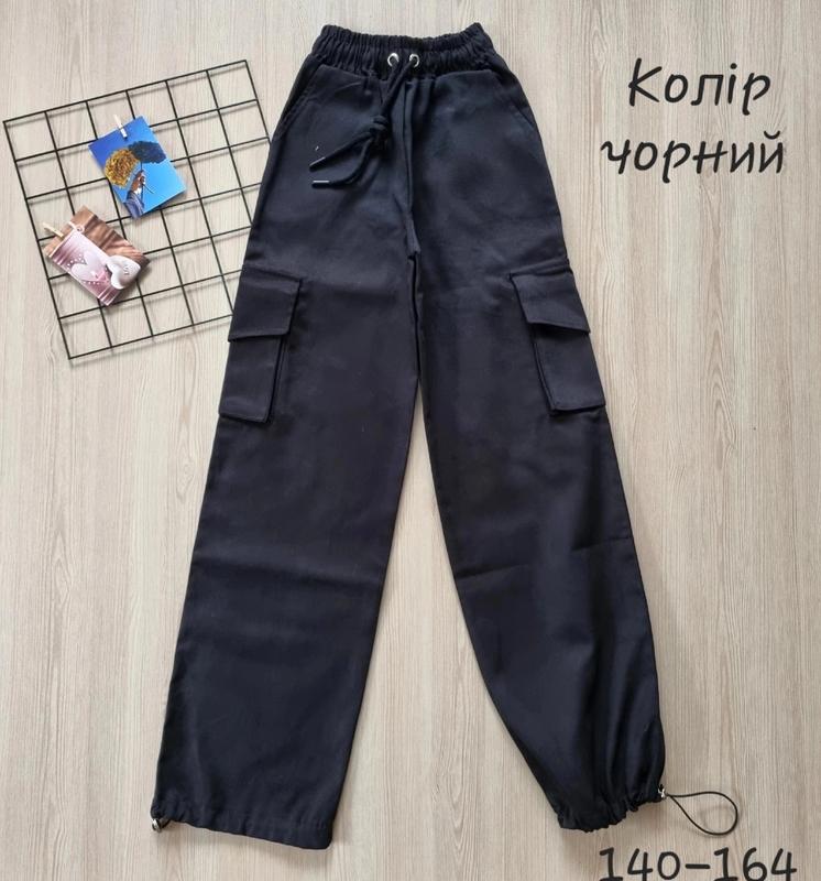 Штани КАРГО Ткань турецкий коттон. Верх на резинке, низ резинка с фиксатором, есть боковые карманы цвет черный 140(3 шт)-длина 93,шаг 67,пояс 26 +-2 см