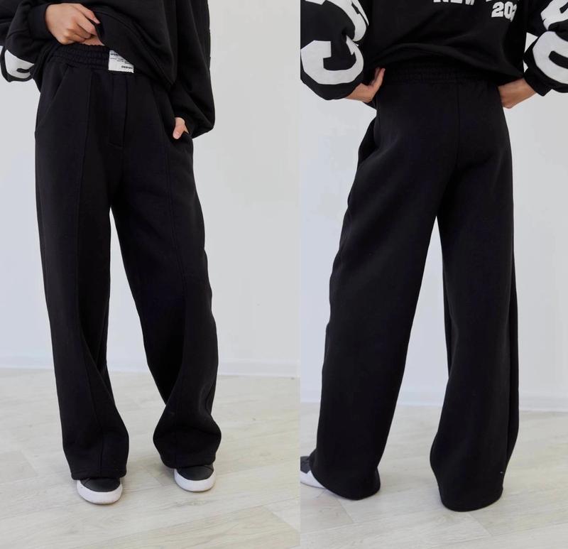 Арт 3676 Теплые брюки палаццо-трубы С карманами В поясе под резинку По переду идет высточка Ткань трехнитка пенье на флисе Рост/длина/шак/пот/поб похибка+-2см 140-146/90/64/27/46-9шт 146-152/94/66/28/47-5шт 152-158/99/70/29/48-2шт 158-164/101/72/30/49-3шт 164-170/104/76/31/50-4шт Тан