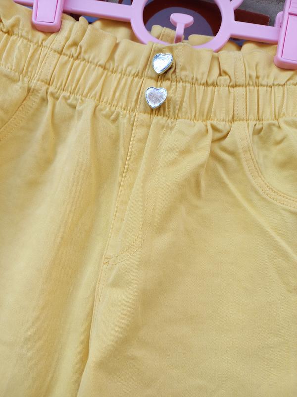 Брюки из плотной ткани, кнопки декоративные. Высокая посадка 26 см Пояс резинка 29-37 см Длина с поясом 77 см Брючина по внутреннему шву 53 см Высота пояса 5 см Светлые пятна внизу брюк с внутренней стороны, в носке не бросатеся в глаза. И ещё увидела светлое мелкое пятнышко на последнем фото.