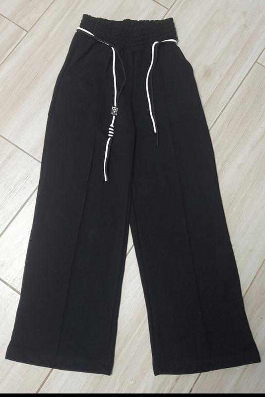 НОВИНКА! Весна! Спереді вистрочені оздоблюючим швом. Пояс - чорно-білий шнурок (в комплекті) Пояс на широкій резинці. Є кишені. Тканина - турецька двонитка петля, дуже гарної якості. Заміри: 140 довжина - 89см, крок - 63см, пояс - 26см, напівобхват бедер - 47см. 146 довжина - 91см, крок - 64см, пояс - 28см, напівобхват бедер - 48см. 152 довжина - 96см, крок - 69см, пояс - 29см, напівобхват бедер - 49см. 158 довжина - 96см, крок - 69см, пояс - 29см, напівобхват бедер - 49см. 🌴