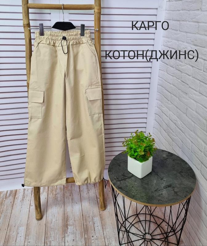 ландиш ✅🥰В НАЯВНОСТІ!!! Невероятно модная в этом сезоне модель штанов КАРТГО с утяжкой, накладные карманы Тканина котон(джинс) КАЧЕСТВО ЧУДОВА!! РЕКОМЕНДУЮ!!! 134(2 шт)-длина 83, крок 59,пояс 43, поб 43 140(2 шт)-длина 85, крок 64,пояс 26, поб 45 146(2 шт)-длина 90,шар 66,пояс 27, поб 47 152(2 шт)-длина 93,шаг 71,пояс 28, поб 49 158(2 шт)-длина 98, крок 76,пояс 29, поб 51 164(2 шт)-длина 102,шаг 81,пояс 31, поб 52 +-2 см
