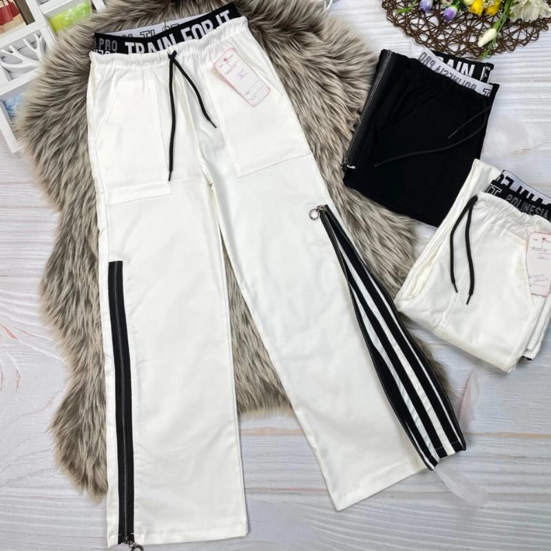 накладні кишені, блискавка по боках 🔥 яку можна ростібнути тканина стрейч-котон Пояс широка резинка + шнурівка Заміри: довжина/крок/ширина в бедрах/пояс 128 - 82/56/33/26 чорні 134 - 85/58/34/27 білі 140 - 87/60/35/28 146 - 90/62/36/29 152 - 92/64/37/30 С