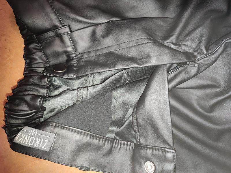 Стильные брюки-слоучи черного цвета для девочки. Модель выполнена из матовой эко-кожи, фактура которой почти не ощутима. Брюки имеют высокую линию посадки по талии, мешковатый силуэт и зауженные к низу брючины с вытачками. Штанишки от украинского бренда Zironka, качественные и в отличном состоянии.
