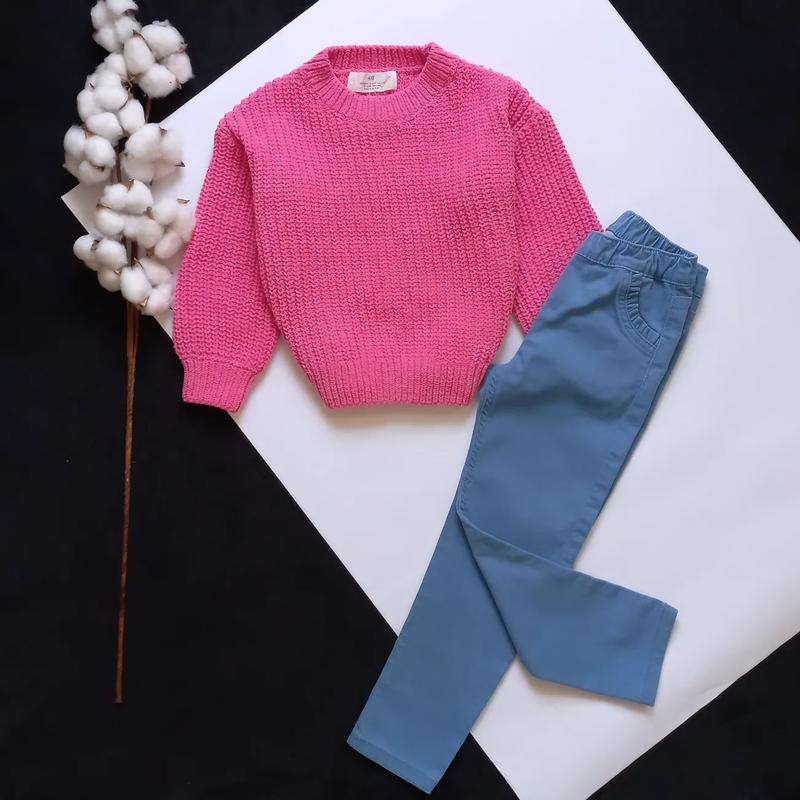 ❌️ Свитер вязаный, ярко-розовый ✔️ H&M ✔️ 3-4р ✔️ Нового ✔️ долж-37, шир-34,руки-40 от горловины ✔️ Брюки голубые, прямой крой ✔️ PocoPiano ✔️ 110 рост ✔️ Нового ✔️ долж-62, крок-42,пояс-24 резинка