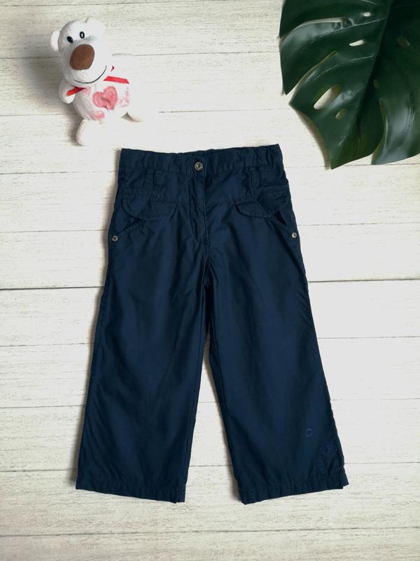 Красивые брюки на трикотажной подкладке. Цвет очень темно-синий. Замеры: длина 49, шаг 32, пояс 24,5, есть утяжка, бедра 31.