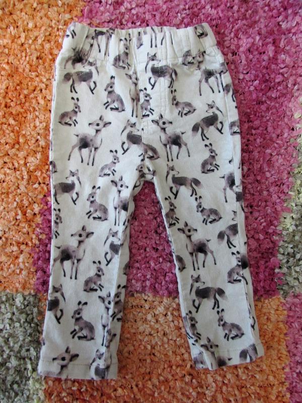 По бирке 86 см. Супер штанишки из микровельвета. Застежек нет, пошиты в виде леггинсов (на поясе широкая резинка) Замеры: длина 43 см., посадка спереди 18 см., посадка сзади 20 см., шаговый 26см. бедра 24 см талия 20 см в нерастянутом виде, можно потянуть примерно до 24см.. ширина штанины снизу 8,5 см.